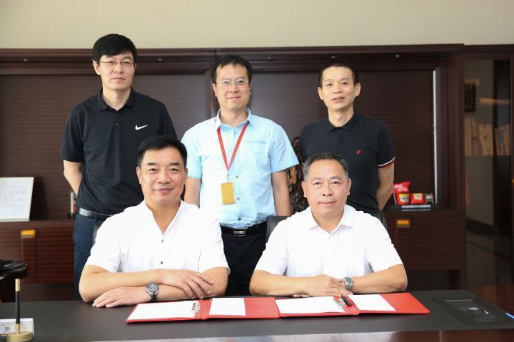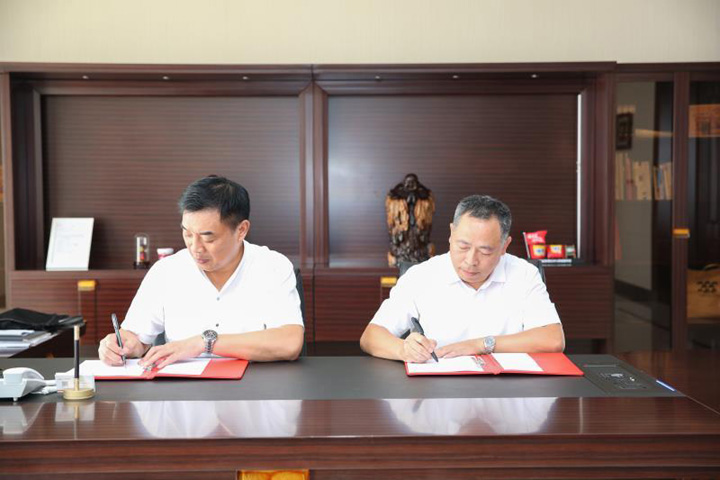 2017年8月5日上午11點,在河北邢臺今麥郎集團總部,國研機械董事長王聲位與今麥郎集團董事長范現國共同簽署了廣州市國研機械設備制造有限公司與今麥郎面品有限公司建立戰略合作伙伴關系的協議。
