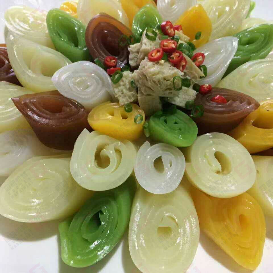 在經濟高速發展和食品越來越多元化的今天,涼皮機如果只能生產涼皮一種產品將難以在市場上立足。國研多功能河粉機可根據不同的配置(例如可加裝拉腸粉機頭、卷粉機頭、自動切片,自動切條等多種方式)和原料出產不同樣式的產品,可直接倒入面粉打槳就可生產出面皮,釀皮;面粉經過洗面后可生產出涼皮和面筋;大米磨槳則可生產河粉、潮汕粿條、江西燙皮、貴州卷筒粉、云南切粉、漢中米皮、綦江米粉、筷子粉等;除此之外還能生產以玉米、紅薯、綠豆等淀粉類粉皮、扁粉、拉皮等等產品。國研多功能河粉機真正實現一機多用,適合不同客戶需求,銷售市場更廣闊!