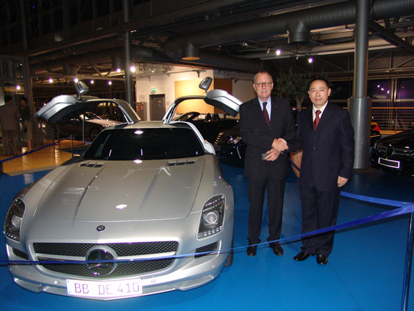 在考察期間,考察團一行與德國企業界進行了廣泛接觸和交流。世界著名汽車制造商德國奔馳公司對應邀訪問的廣州企業家考察團表示了熱烈歡迎。總裁史密斯.科林博士親切會見了王聲位董事長一行。史密斯.科林博士說,近年來,中國經濟發展很快,中國的市場是巨大的,奔馳公司現在越來越重視中國的市場,將來還會進一步加大在中國的投入,不斷引入更多的車型到中國來。他說,十分感謝中國消費者對奔馳品牌的信賴和支持,歡迎中國企業界的朋友經常來交流。王聲位董事長在會見時表示,中國現在的政策很開放,國家鼓勵有實力的企業實施“走出去”的發展戰略,德國是中國在歐洲最大的貿易伙伴,經濟實力和技術水平都位居世界前列,尤其制造業非常發達,值得很好學習,我們收獲很大,與德國人民合作,不僅可以利用德國優勢的科學技術資源,更可以依托德國在歐洲的中心地理位置,輻射到更為廣闊的歐盟市場,愿意和德國企業界的朋友進一步的交流與合作。